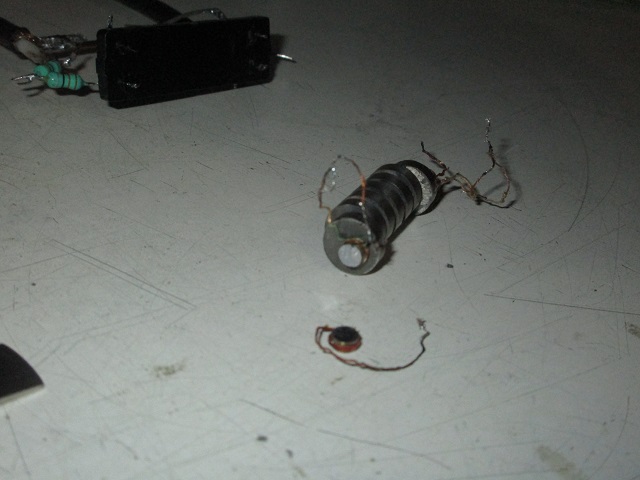 https://patentimages.storage.googleapis.com/99/b4/ca/7bf470f03be104/US2877432.pdfThis patent provides details about the ceramic transducer including that it is cut to dimensions that resonate at 455 kHz. To examine the transducers more closely, the filter was stripped of all the old wiring. In the process one of soldered encaps came off a transducer.