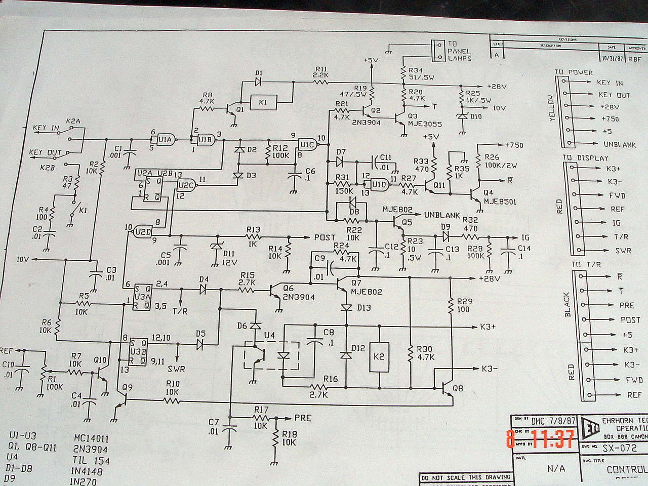 I was tempted to convert it to two vacuum relays and bypass the fast PIN diode switching, a fairly common mod, but I would rather leave it in the more valuable original state if possible. I attach two schematics, if anyone would be able to find the time and inclination to study them I would be most grateful as I don't want to spend a lot of dosh on new stud mount PIN diodes if it might be just D3, D4 and D5. These are also near unobtanium, but Alpha now say it's OK to replace them with "low capacitance" 1N4007's. I can find nothing lower than 8pF ones, so i guess they mean those. Alpha have shut for the virus with no signs of opening again any time soon.
