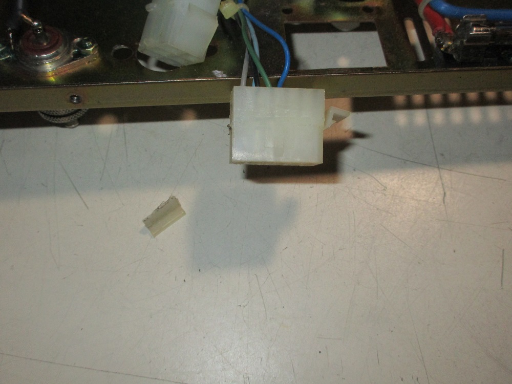 The accessory 24 pin connector was found to have a broken mounting ear. The connector was held in place with clear epoxy all around the perimeter but did not hold. The epoxy came off in large flakes. To repair this required a solution that would allow the ear to flex if the connector were to be remain removable in the normal fashion.