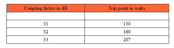 The trip point is sensitive to the actual coupling factor of the coupler. It can be shown that the trip point would change about as follows depending on the actual coupling factor,