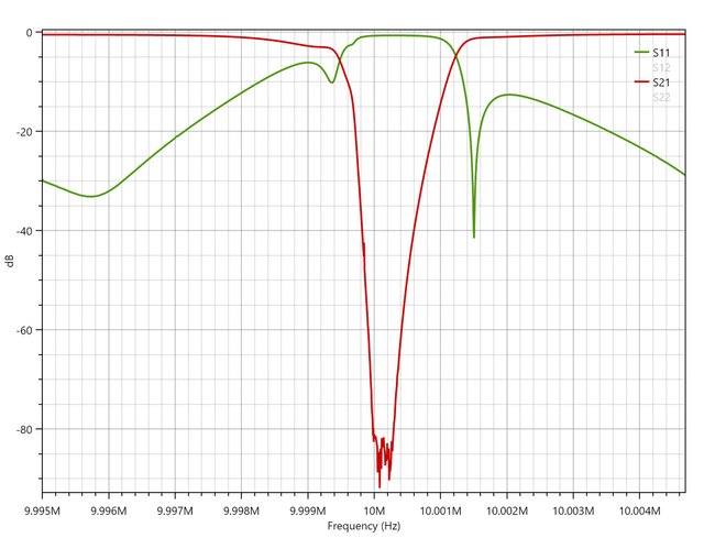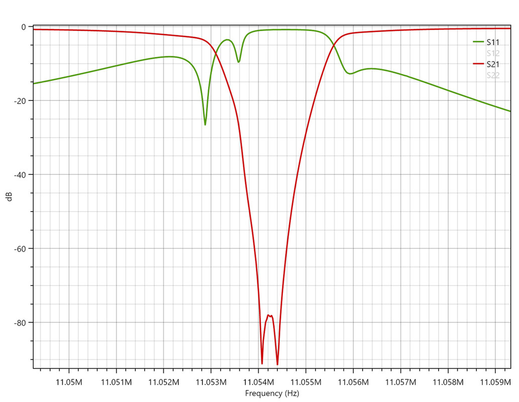 Certainly some good results from the low cost crystals, Jeremy. I am encouraged, although mine will be a while turning up. I think I ordered 10 of each frequency with the intention of choosing the closest 5 for the notch filter. I recalled this morning where I saw the idea of "doubling up" the shunt crystals: it was in the July/August 2008 edition of QEX, in Wes Hayward's (W7ZOI) article on oscillator evaluation with a crystal notch filter. Looking again at that article, I see he achieved about 85 dB null depth at ~10 MHz with 5 crystals, but his crystals may have had lower ESR.