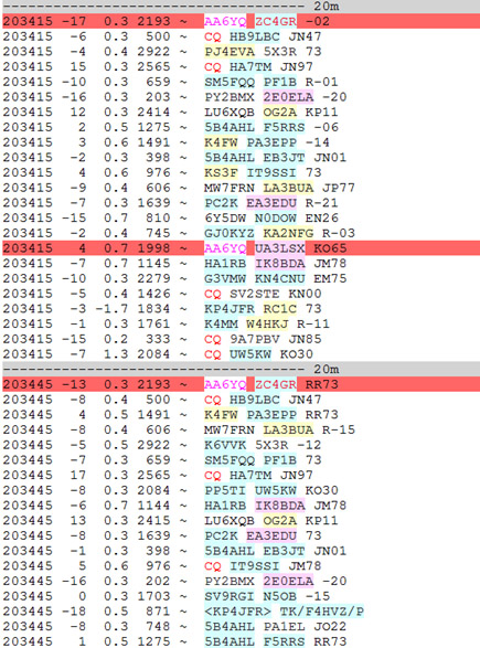 Noting the primary overlap between ZC4GR's operating activity and the propagation openings, I monitored the 20m FT8 sub-band from 12Z to 23Z.