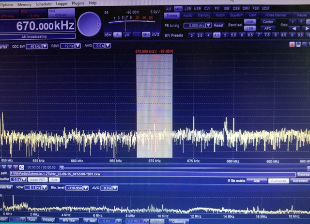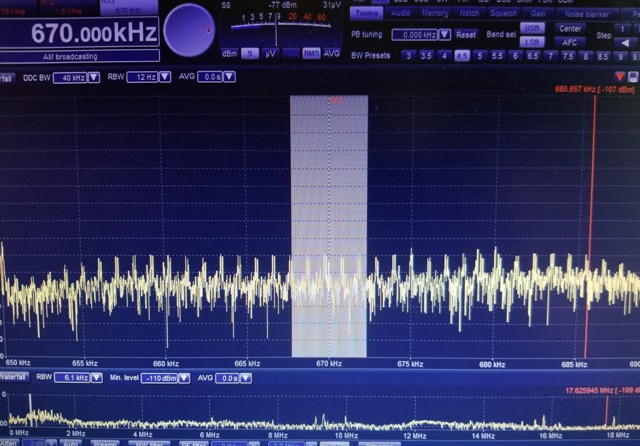 I was determined to find the cause of the interference. I turned off all house power except for the circuit including my radio room. Checked 670 kHz. All noise/interference is gone. This is good as I’m able to continue. Here is a screenshot.