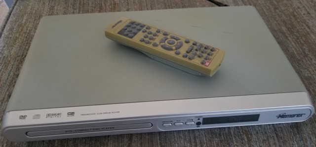 On the problem circuit is a power strip, a FIOs box, a TV and a DVD player. Initially thought it was either the power stirp or the FIOs power cord brick. No, both are OK. Plug in the TV. Still OK. Plug in the DVD player. Terrible noise returned! The DVD player is a Memorex. It’s at least 20 years old. Here is a picture of the problem.