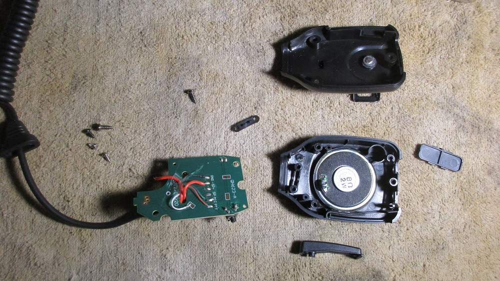In the photo below, if the black and white wire positions are reversed results in the modified version where the PTT and microphone do not return to ground through the speaker. The KMC-21 OEM configuration is standard for most microphones with the sleeve as ground. It is pretty unusual to use Ring 2 for ground.