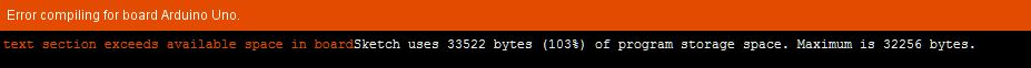 If another upload is necessary, it would be a good time to add a header in a location that does not require so much disassembly to access it. After compiling the firmware the Arduino programming environment shows the resources left for the Atmel mega328. Very little in terms of memory is left.