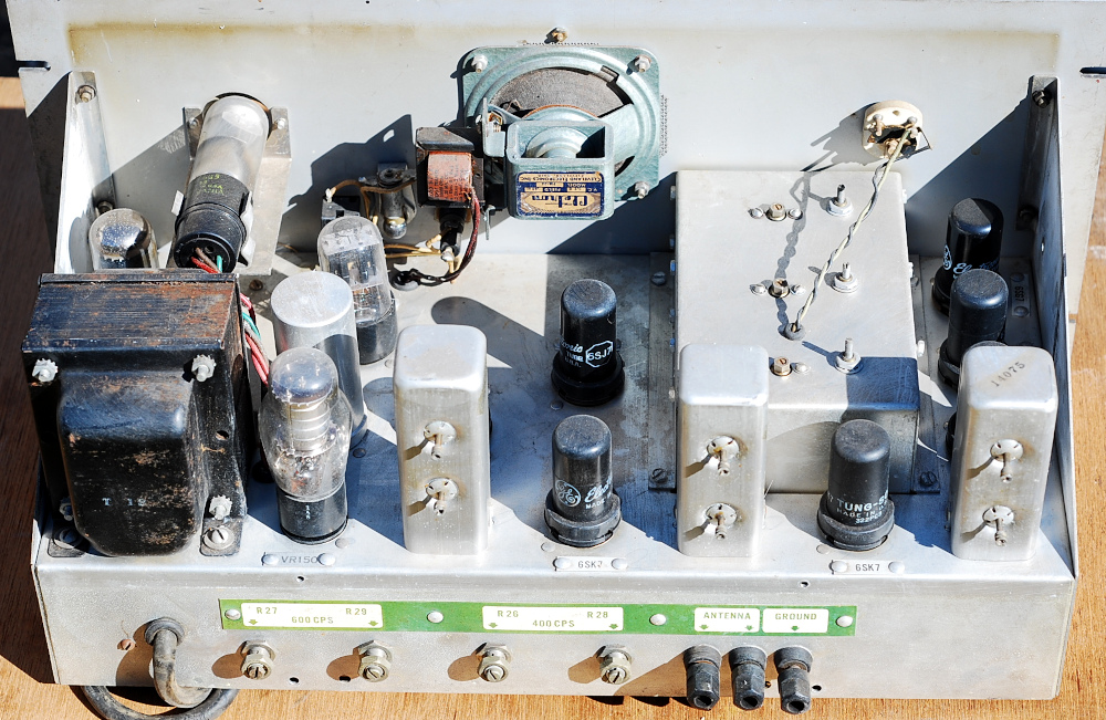 The Browning RH-10 consists of a high Q antenna transformer, a sharply tuned R -F amplifier, converter, oscillator, two IF stages, detector, selective amplifier output stages and a cathode ray zero beat indicator. Although normally supplied
