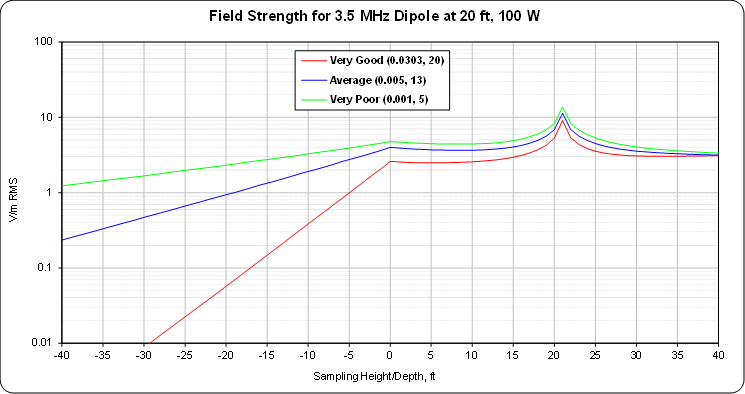 To give you some idea of where you stand, the program reports and plots skin depth, the distance where antenna current drops to 37% of its surface value. Most of the effect of ground occurs above this point. Some people use two skin depths (13.5%) to be conservative. So if the skin depth is 3 feet, you can feel more confidence in the numbers a foot-long probe provides than if it is 60 feet.