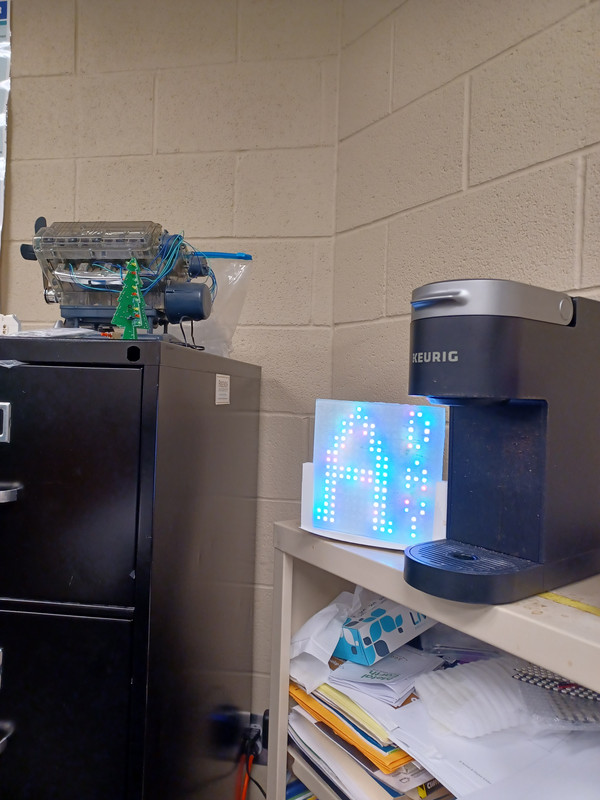 What I want the students to make is a display that will have either an A, B, T, or O displayed in the hall outside of my classes. Yes, through labourious design, this could be done entirely in hardware. However, I want them to do it in software.